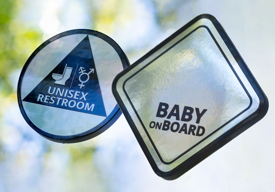 Baby on Board and Unisex Restroom holo stickers (2 pack)